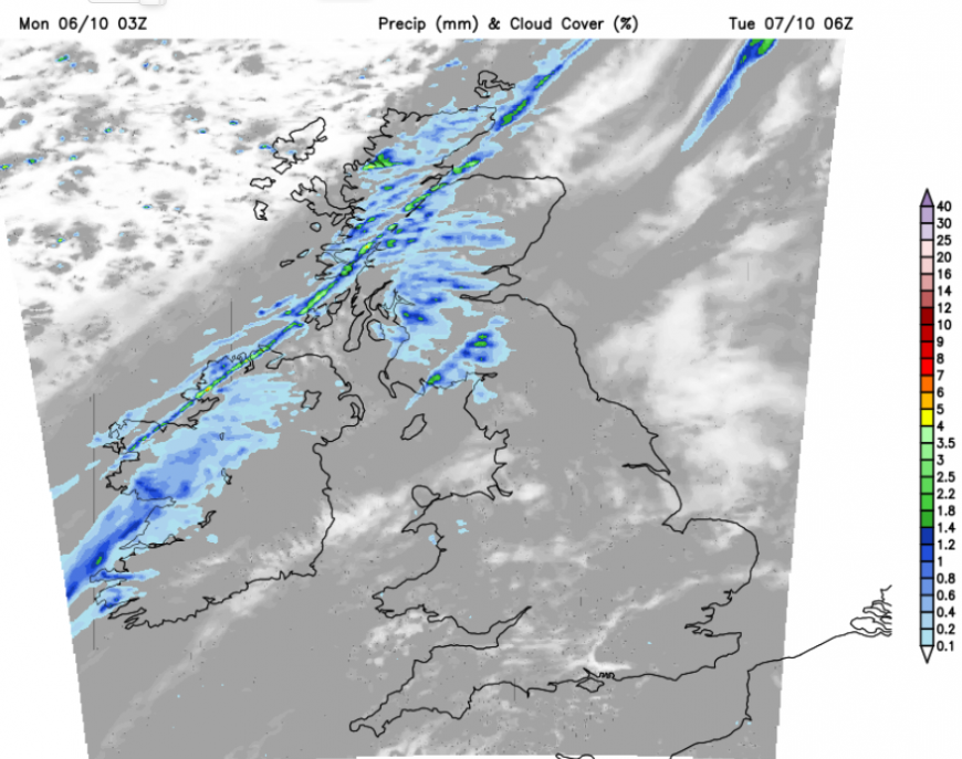 Through the afternoon, it will become wet for Cumbria with an onshore wind as the cold continues to creep southwards. It will be a cooler night for the northern half of the UK but still mild in the south.