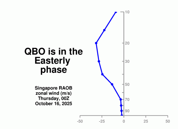 The QBO is in a descending strongly easterly QBO episode that looks to also persist through winter 2025-26.