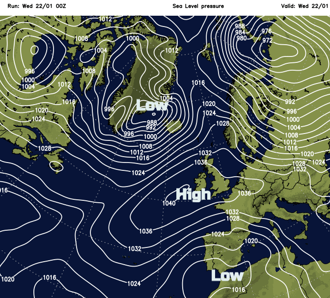 In-between with warm air being advected north, an upper ridge formed, air began to converge and in relative quiet, the large high pressure continued to build. This left a huge meander north/south in the Jetstream across the Atlantic ahead of the Newfoundland storm which forced another low pressure down towards Iberia. You can see the cut off low related to Storm Gloria. This is still bringing huge waves and heavy rain, even inland snow to eastern Spain this week.