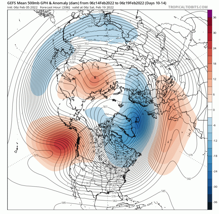 So, what are the prospects looking like for the rest of this month and winter? Well, the polar vortex looks like remaining as strong as ever, as already mentioned, in the stratosphere the vortex is breaking records with wind speeds at 10 hPa / 60N at the moment and may continue too over next few weeks. Generally the PV tends to weaken as we head through February and into spring, but no signs of that occurring for now. But in terms of the weather over the next few weeks, it looks like the tropospheric polar vortex will expand further south over the North Atlantic than was the case in January, so this means the jet stream will be further south.