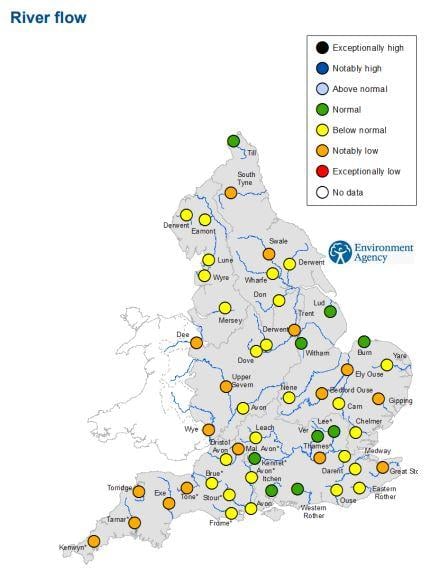 The dry April conditions is certainly impacting on river flow across England, many flowing below or well below usual for the time of year: