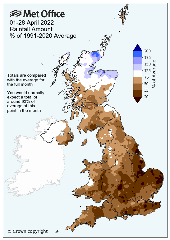 As April draws to a close, another completely dry week for many across Britain, April rainfall looks likely to be less than half of normal for England and Wales as we finish the month.