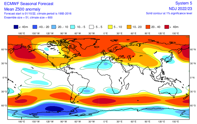 It’s only a forecast and accuracy of any weather model at this range for the whole of winter is open to error. However, the signal for cooler weather later this year is consistent with how La Nina conditions, expected to last into early next year, typically imprint on global weather patterns leading to a greater chance of high latitude blocking in early winter, particularly a third consecutive winter with La Nina. So, early indications are for a cooler or colder late autumn and early winter – leading to a greater demand for energy in northern Europe including the UK, while the signal for higher than normal pressure close to or over northern Europe could also mean less wind power generation and thus greater demand for gas to produce electricity, which is particularly a problem for the UK, as most of non-renewable energy produced to make electricity that's not from wind comes from gas and there are worries of a shortage of gas in Europe, with the threat of Russia shutting off its supplied and increasing demand across Europe for heating and producing electricity.