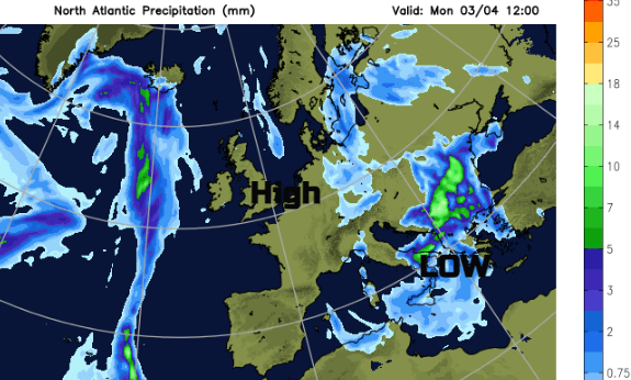 After a wet, often windy but mostly mild March, the beginning of April brings a shift in our UK weather. It will also be Easter Holidays for many people. The first weekend could still be unsettled but there are signs of pressure building to the north of the UK. This would bring cooler air our way, also drier, more settled conditions with clear skies and the risk of frost in northern areas. Further south in Britain, there could be spells of showery rain off the North Sea but there shouldn’t be the onslaught of wind and rain from the Atlantic.