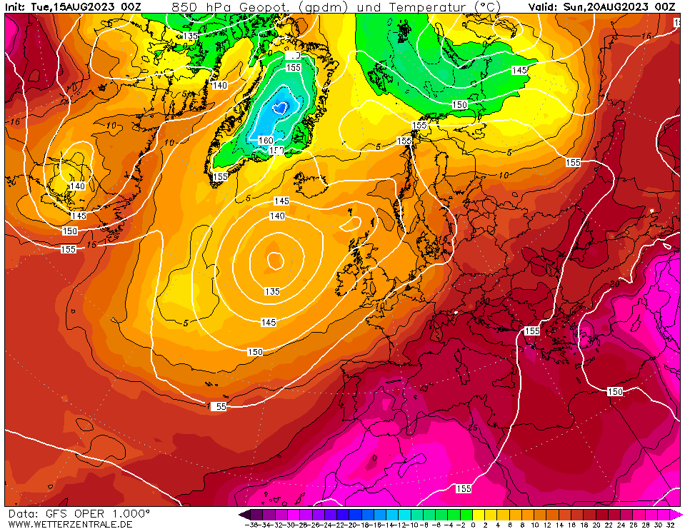In the meantime, a heat dome looks to build across Iberia before extending northeast across France, Low Countries, Germany and western Alps early next week. The edge of this heat dome may clip SE England too by Tuesday. So with pressure rising from the south in response to this heat dome spreading northeast, temperatures look to rise early next week across southern Britain in response to increasing sunshine and very warm air pushing in from France. Models are indicating temperatures could peak in the low 30s centigrade on Tuesday towards SE England. Before temperatures drop again from mid-week, but still very warm.
