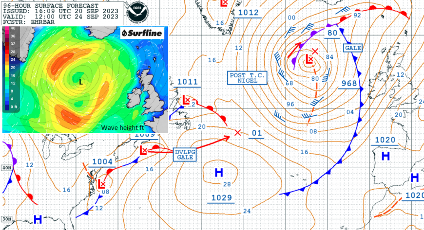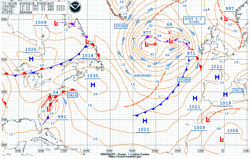 “Late Friday and into the weekend, models show Nigel interacting with a larger polar low over the North Atlantic… By the end of the forecast period, Nigel will become absorbed in the aforementioned larger polar low.” NHC