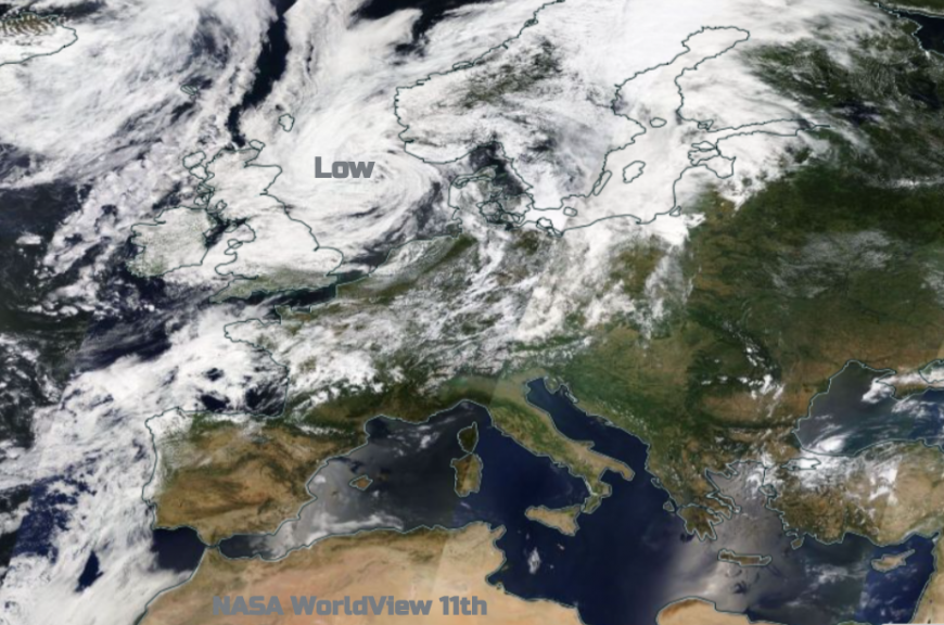 Clear skies and sunshine with high temperatures for southern and eastern Europe, unsettled in NW. NASA