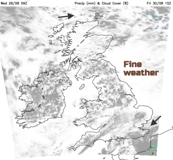 The High pressure will bring a lot of fair, settled weather and it will still feel warm in any sunshine.