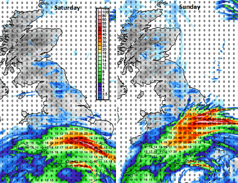 The Azores high re-establishes itself but further north in the Atlantic so our more traditional weather patterns will look like they’ve had a bit of a shove. With low pressure to the south of the UK (rather than the usual west or northwest) and warm air arriving from the east (rather than from Spain then France) we are in for some topsy-turvy weather this weekend.