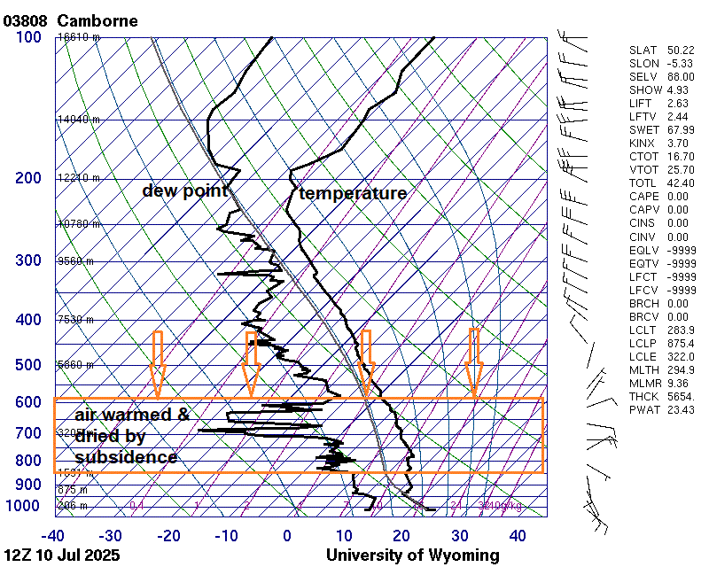 Upper level ridge builds northeast across the UK next few days, with convergence of winds aloft leading to subsidence of air which will warm as it descends and reaches the surface