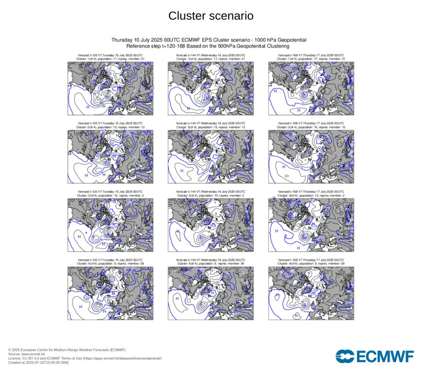 Despite recent model runs, including some of the overnight runs, painting an unsettled picture next week, a look at the 00z ECMWF ensemble clusters suggests that the majority of the ensembles indicate that high pressure may hold on across southern areas Tuesday - Thursday, while northern areas remain changeable nearer low pressure, with rain or showers at times, especially wet in the northwest. The drier and more settled conditions in the south expanding further north towards the end of the week. This could mean heat may return across the south next week after a brief dip in temperatures earlier in the week.