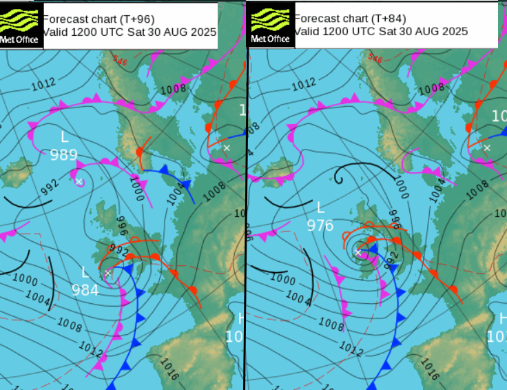 The low centre is further north on Wednesday's model run