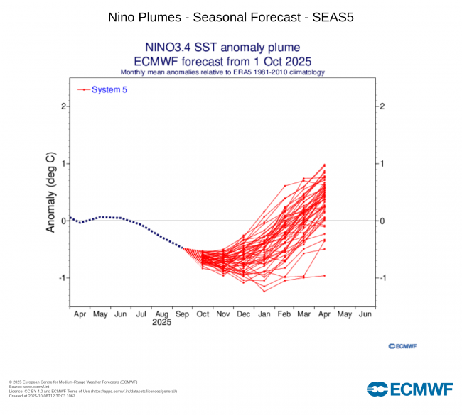 with a 71% chance of La Niña during October - December 2025. Thereafter, La