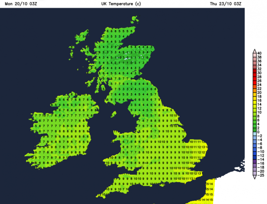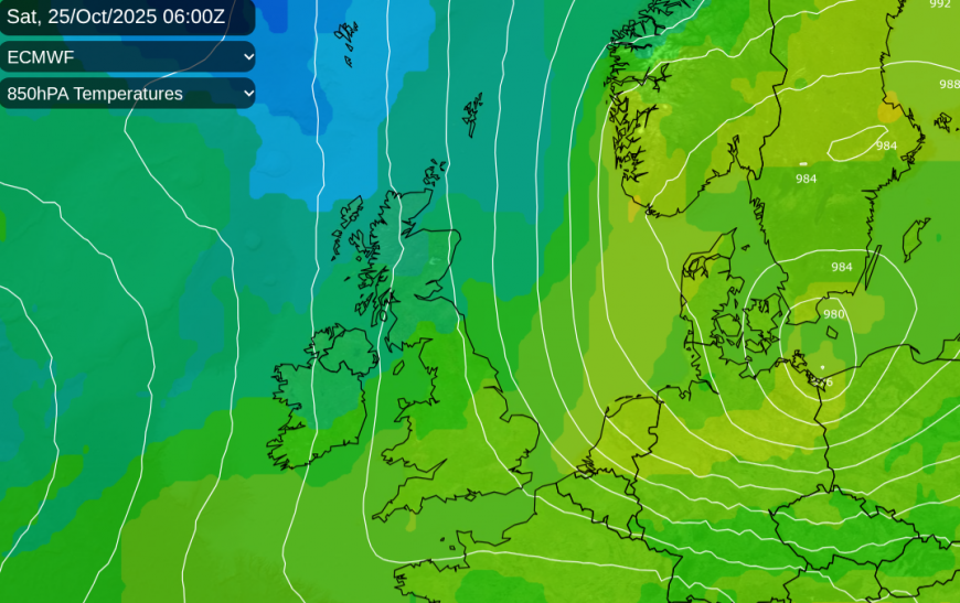 As the Arctic Maritime airmass should take hold on Friday with a different feel for the start of the weekend. There will be a gradual decline in temperatures through the week. On Sunday, Wales saw 17.6C and the highest temperatures this month was 22.3C in northern Scotland on the 6th. That will become a distance memory with the gales and then Arctic air. Now the UK will be closer to 12 to 15C midweek, 10 to13C at the weekend. High pressure looks to shove in from the Atlantic by the end of the weekend changing the flow to a more northwesterly Polar Maritime. It will feel cold and damp in all of this. Adjust your clothes and check your heating if you haven’t already. By the middle of next week we should be back to the westerly flow off the Atlantic.
