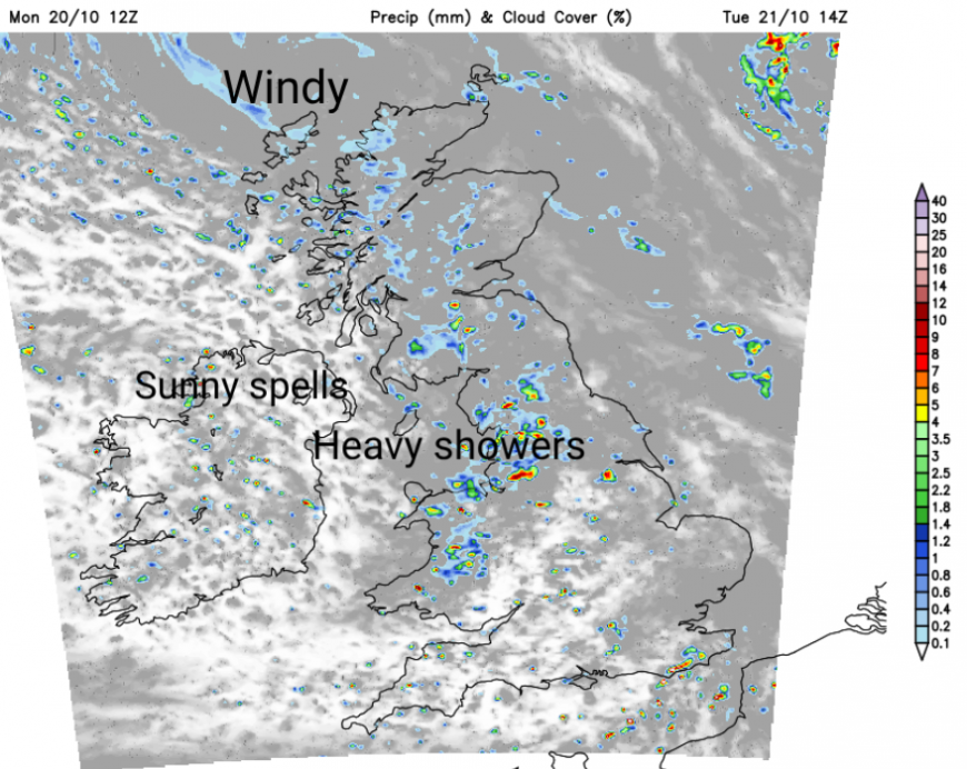 Although the strong winds and scattered showers will continue in the far north of Scotland, elsewhere Wednesday should become a better day. With fewer showers and more sunshine, there will be light winds for many. England, Wales and Northern Ireland will be around 12 to 15C. More showers will arrive over Ireland later on Wednesday linked to a new occlusion. Scotland will feel colder, especially in the north. What will need watching is the waving frontal band to the southwest. This is the start of developing low which could bring rain through the English Channel on Wednesday and into the night.