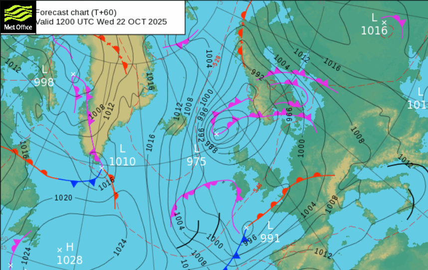 The next storm name on the list is Bram, following Storm Amy. There are no signs yet that we will have a named storm this week. There is a lot of uncertainty in the forecast as two low centres move around each other in the middle of the week. The most recent runs of the model have pulled back slightly from developing the low over southern Britain by Thursday, which had hinted at wind disruption for eastern England. This could now be offshore in the North Sea. And yet there could be heavy rain over southern and eastern England during Wednesday night and early on Thursday. At this time of year, it can be the falling leaves blocking the drains which cause problems with surface water flooding. The low close to Scotland will continue to lurk and rotate with a feed of showers and the risk of gales. Thursday will be windy. Do keep an eye on the forecast as confidence is low at the moment.