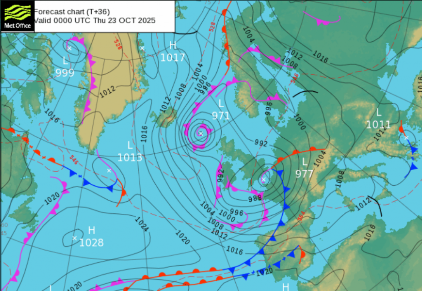“A deepening area of low pressure is expected to cross southeast Britain on Thursday, clearing into the North Sea by Thursday evening… There is a smaller chance, should the low be deeper, that wind gusts of 65-75 mph may develop for a time very locally, this most likely late morning and into the afternoon.” MO