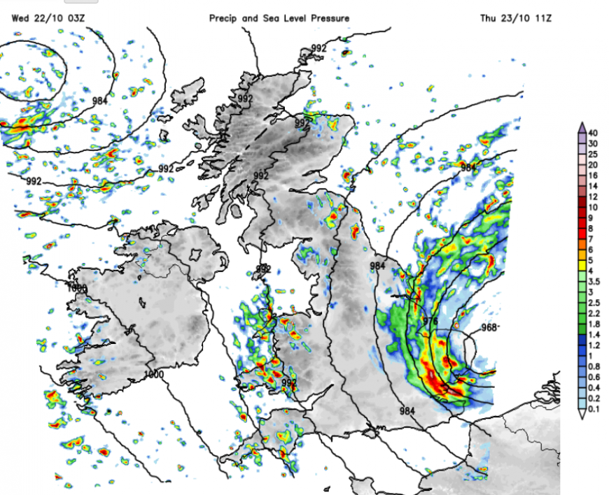 The UKV Model has more heavy rain for eastern England with the low centre nearby by Thursday lunchtime and clusters of heavy showers elsewhere with some bright spells in the west. Heavy rain could affect NE England on Thursday afternoon and frontal rain could reach back to NE Scotland early on Friday as the same low pressure rotates over the North Sea to end the working week.