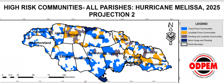 STORM SURGE: A life-threatening storm surge is likely along the south coast of Jamaica tonight and on Tuesday. Peak storm surge heights could reach 9 to 13 feet above ground level, near and to the east of where the center of Melissa makes landfall. This storm surge will be accompanied by large and destructive waves.