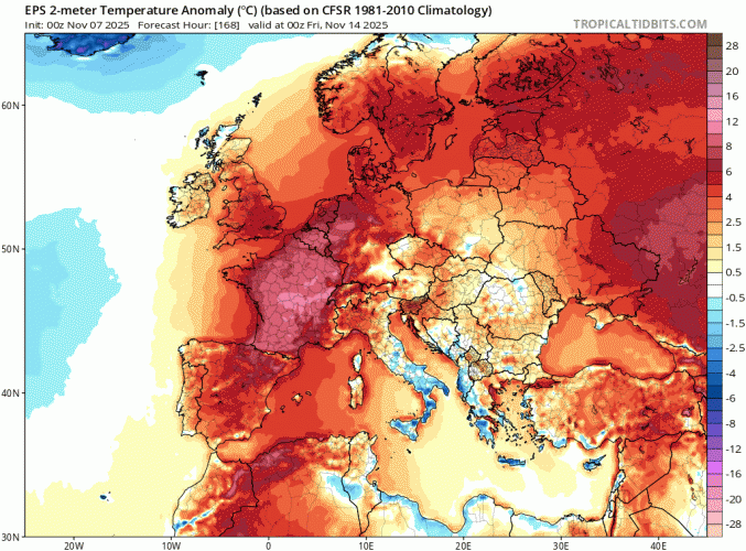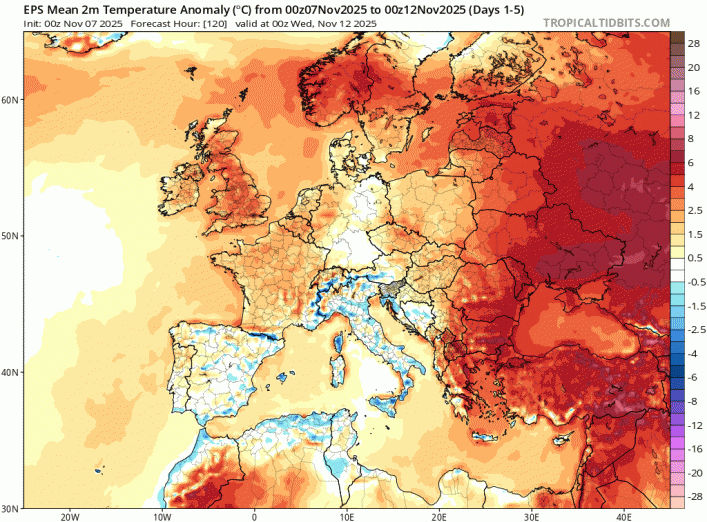 It will continue to be mild for the time of year over much of northern Europe over the next 5 days at least ...