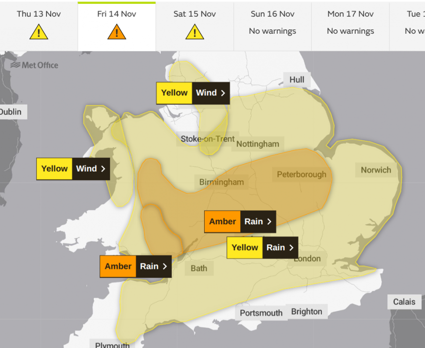 Much of southern Britain including the Midlands, is covered by a Met Office yellow rain warning and recently there are Amber rain warnings too. There could be over 100mm of rain in places.