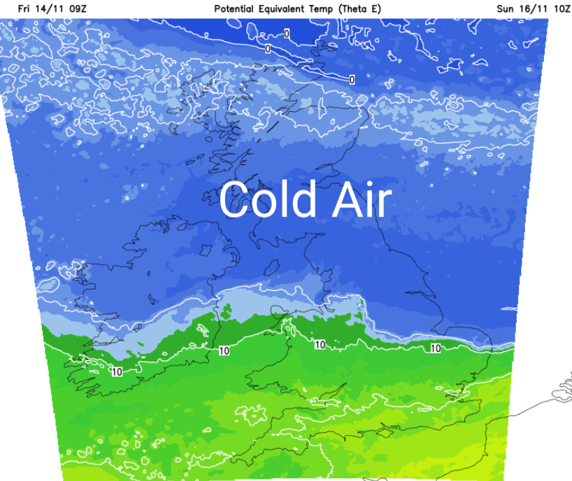 By Saturday, there will be a grey band over eastern England with the easterly wind still bringing damp weather and patchy rain. Lee gusts will continue for NW England in this zone across Britain. To the south it will be much improved with drier and brighter conditions. To the north, it will be chilly but with sunny spells for some.