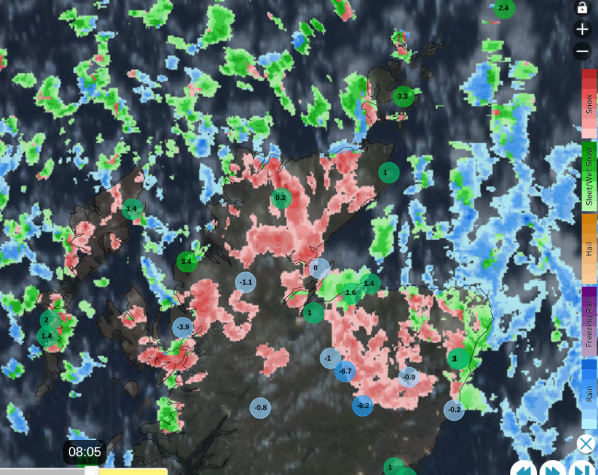 Plenty of showers showers showing on the radar with sub-zero temperatures for inland Scotland this morning