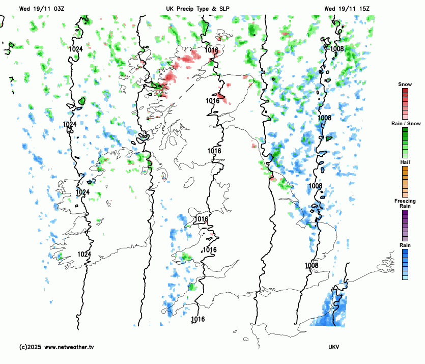 Central and southern Scotland, even for a good part of England, will be rather sheltered in this northerly flow, so it will be cold and sunny but often dry.