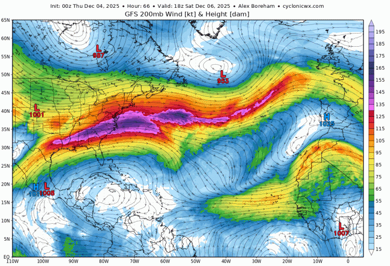 Until the waves of deep cold dropping southeast across Canada and the eastern side of the USA ease, then we will continue to see a strong zonal (westerly) jet stream across the Atlantic driving low after low towards the UK.