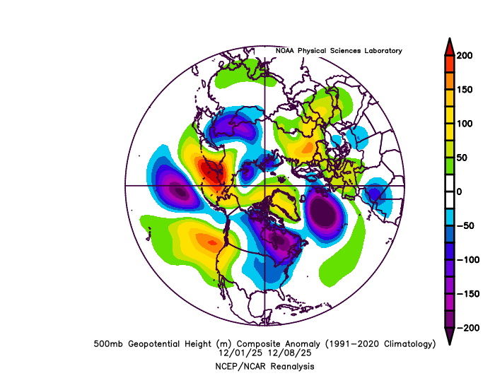 500 hPa anomalies 1st - 8th December 2025, look similar to above?