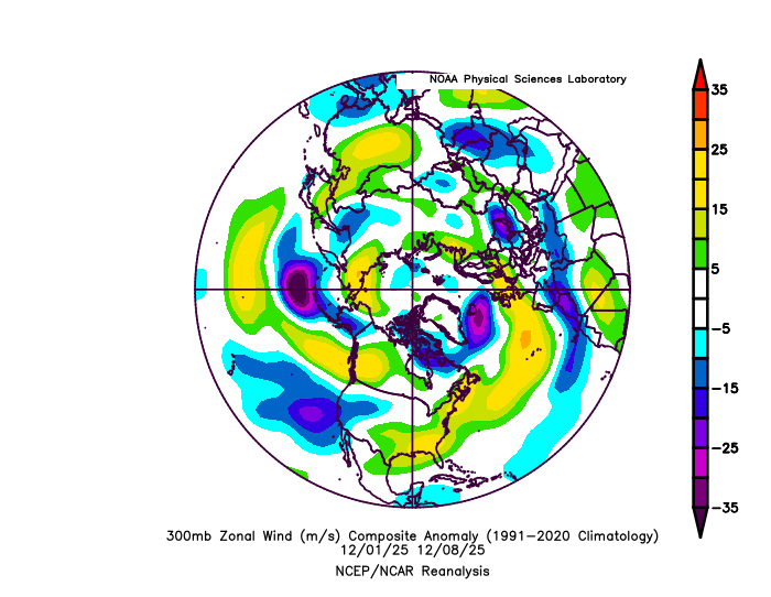 Dec 1st - 8th 2025 300 hPa zonal wind