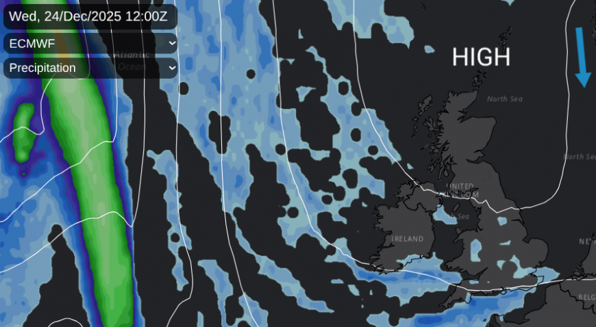 Although we have further bouts of heavy rain and strong winds through this week, Christmas week looks to bring a change. By Christmas Eve, we could see high pressure building over the UK. This would bring more settled conditions. Also less mild air, maybe turning colder but if you are looking for snow, at the moment it just looks drier and steadier.