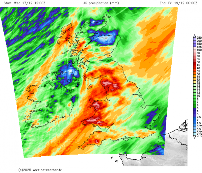 However, it looks to turn drier and colder next week, as high pressure builds close to the north, while Atlantic low pressure systems are re-routed to the southwest and south of the UK. This will allow a southeasterly flow to develop early next week, before backing easterly from mid-week, which may bring in colder air from Russia in time for Christmas. Still some showers around on Monday, but a drying trend from Tuesday, as the drier continental flow develops.