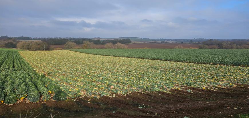 They are a hardy and robust plant but do take six months to grow here in the UK. Their name comes from a historical popularity in Belgium with a similar cool (rather than tropical) climate. They are a classic winter vegetable and benefit from a frost. They need fertile, well-drained soil but that should have some moisture when planting. In 2024, high rainfall delayed some planting due to waterlogged fields. Full sun for the summer months, with a gentle heat but if there is a lack of rain, the fields will be irrigated. Autumn rain is important and that did arrive, even though eastern Scotland has continued with a rather dry year overall. And there was a cold dip with frost as we moved into the second half of November.