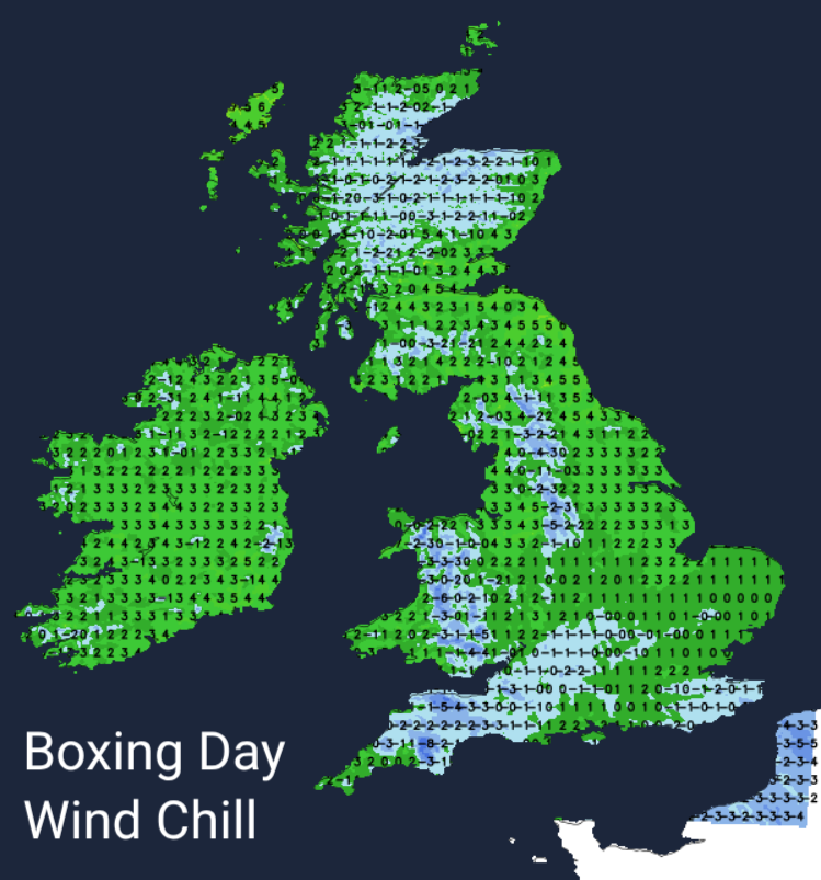 The chance of any meaningful snow at low levels remains slim. This festive period shows no signal for widespread snowfall, with most areas staying dry. The odd wintry shower mixing rain and sleet might clip northern hills, but nothing disruptive is currently on the cards.