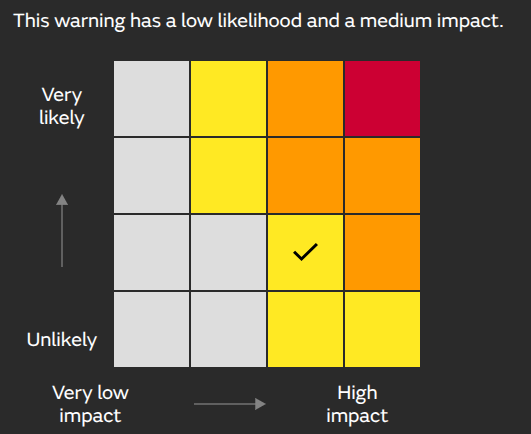 The Met Office has to balance; the rain/snow risk, the uncertainty for the track of these incoming lows, the time of day when snow might fall, the existing conditions (we all know it is cold out there) and think about the warning matrix - the likelihood of disruptive snow and the possible impacts.