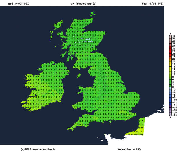 This means a fine and sunny morning and early afternoon for many, temperatures reaching 5-8C after the cold start, so not as mild as the last few days in the south.