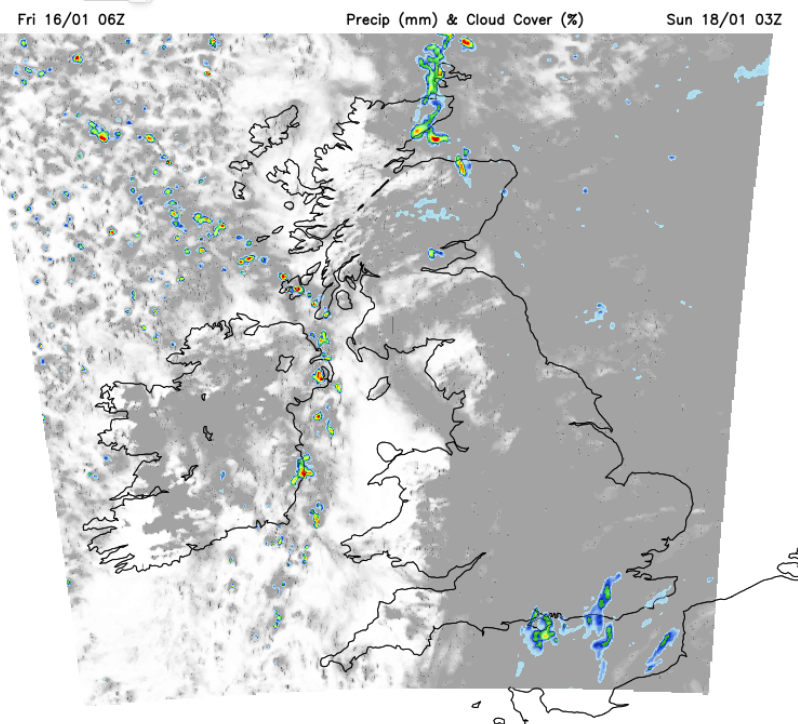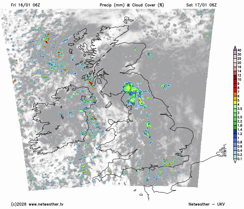 By the small hours of Saturday the UKV model has a small cluster of showers moving from Dorset, Bristol up to Cumbria but milder air reduces the risk of ice in the south.
