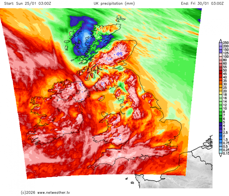 Models have increasingly been showing some large rainfall totals over the coming few weeks for southern England and Wales. Large parts of southern England (mostly south of the M4) and Wales have seen over 100mm so far this month, with a lot more to come. With the ground already saturated and river levels currently already running high, there is a growing risk of flooding as we head towards the start of February.