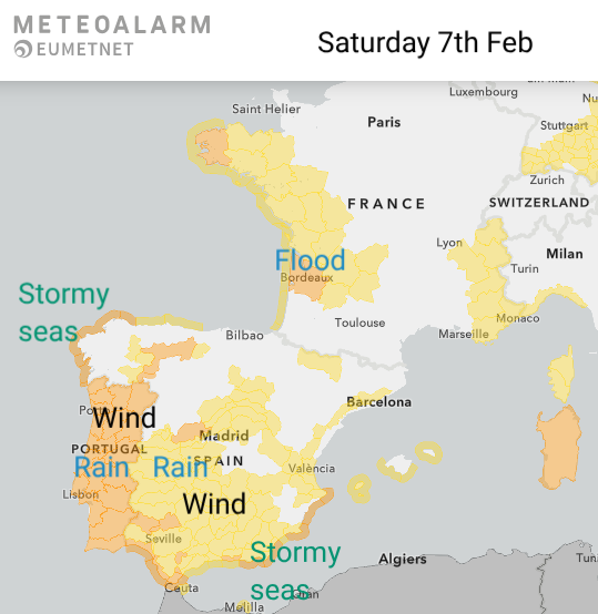 El País reported on 6th - More than 100 roads closed, 7,000 evacuated and displaced, and trains suspended in Andalusia with more rain expected as Marta arrives on Saturday. With the risk of further flooding and landslides (and the recent rail incidents) there have been lots of cancellations and travel disruption.