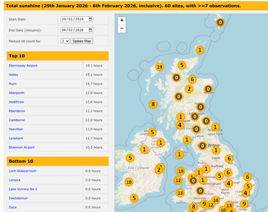 It has really been grim in parts of northern and eastern Scotland. Lerwick on Shetland has not seen any sunshine for over a week. Boulmer and Leeming in NE England have only recorded half an hour. Nobody expects much from February, but having so little sunshine and so much dull, damp weather is quite a chore. For those who can’t, or don’t want to, venture out in such weather, 2026 has been difficult, especially for northern Scotland, with a week of deep snow to start the year, then this endless rain coming off the North Sea in a chilly onshore flow. Thinking back to the icy start to the year, there are still folks having to put up with broken arms or hips whilst looking out at the gloom. At least it is getting lighter (when it's not raining) around teatime. Spring will soon be here.