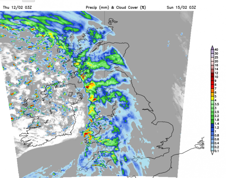 Even though the Saturday sunny, drier break will be short-lived, it will be a welcome change for the regions which have been subjected to endless rain and February gloom. And it might be nice for Valentine’s Day to have a hint of spring in the air. It is also the Six Nations rugby this weekend. The weather looks much better on Saturday than on Sunday. And the Winter Olympics could see some unsettled weather by Saturday as yet another European named storm moves over Italy.