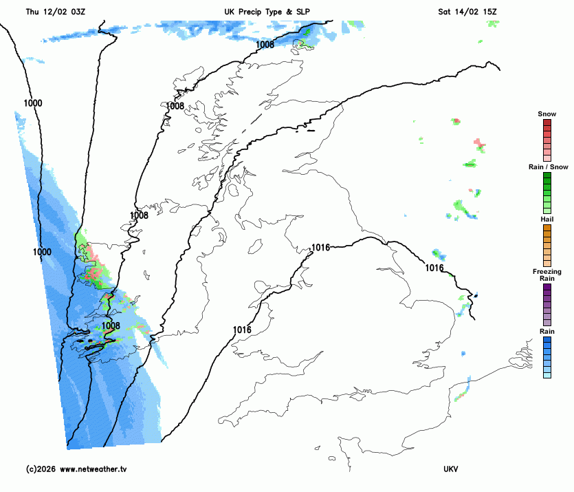 As the frontal precipitation arrives, the southerly winds will strengthen. There will be coastal gales around the Irish Sea, through the North Channel and for the Hebrides. If you are out in this in the small hours of Sunday, it will be miserable. Icy rain and snow, wind chill and low temperatures.