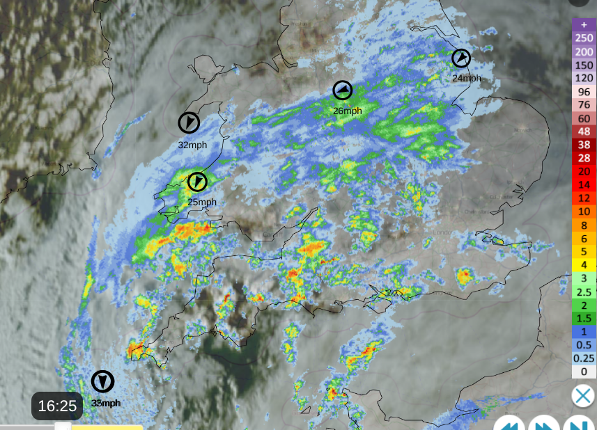 Frontal rain clearing southwards on Friday, with cold Arctic air following from the north - Netweather Radar Friday 4:25pm