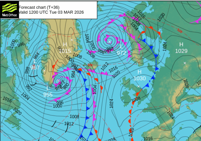 Colder air will flow southwards over the UK as the frontal band pivots. Northern areas could see a frost in places, after the rain from the occlusion clears eastwards. The cold front over southern Britain will just bring more cloud and maybe a little patchy rain for Tuesday morning. The front fades as high pressure begins to build. Southern England and south Wales will still be in the milder air with temperatures depending on the amount of sunshine. It can feel very different when the sun appears and temperatures could reach 16 or perhaps 17C.