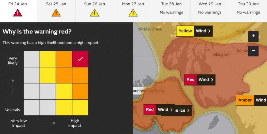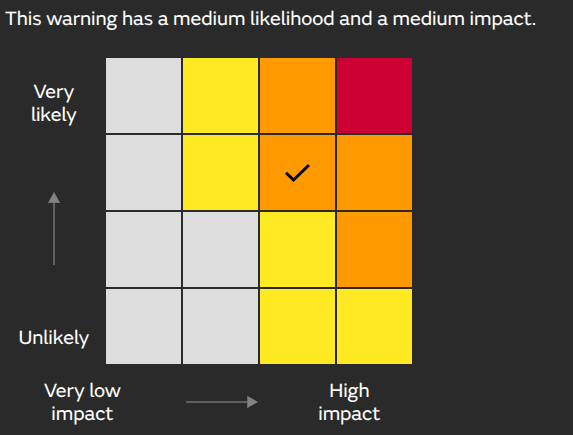 Impact based weather warnings look at a more holistic picture. It includes the severity of the weather, what has happened recently, timings and using a matrix, its likely impacts along with the likelihood of that occurring.