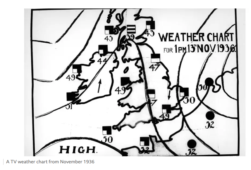 Radio broadcasts became a key part of everyday life. To find out weather information the public would listen to the radio or look in newspapers, with a public television service starting in 1936. Today there are forecasts for regions, nations and around the world but the initial BBC broadcasts were limited to the London area.