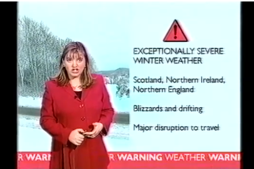 A new type of warning system appeared when FLASH warnings were introduced in 1988 and were issued via news channels in the form of an on-screen message to warn of severe weather. In 1990, these morphed into the National Severe Weather Warning Service (NSWWS) which is still in use today. It was one of the first items available on the first Met Office Website in 1995.
