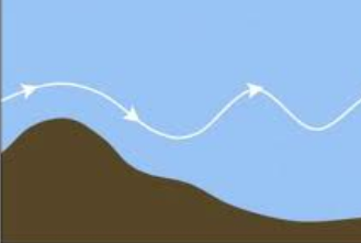As a brisk wind blows over higher ground, such as the NW Highlands or the Grampians, its quick path is interrupted by the mountains and it sets off an undulation. The air has to be stable and there has to be some moisture to create the clouds. The Foehn effect seems to have dried out most of the air over Grampian, but there is still a chance os seeing clouds this evening. In the up draught part there are the cloud lines and in the downdraught part it is clear, these lines are standing lee waves and can include lenticular clouds.