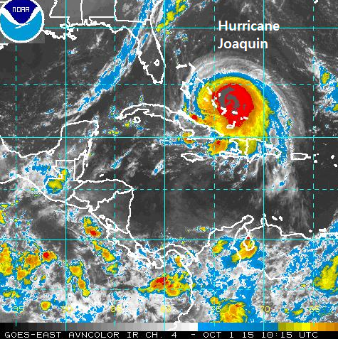 Joaquin centre east of Long Island, Bahamas 0915UTC 2nd Oct 2015
